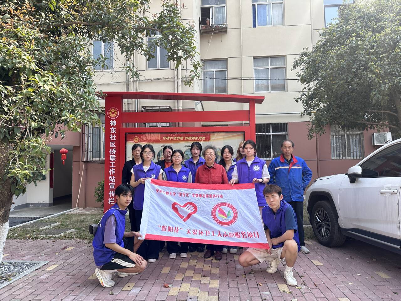 为践行雷锋精神,深化劳动教育实践,3月26日下午,外国语学院联合后勤保障处、万豪城市管理有限公司走进教工区14栋神东社区侨联工作站,开展“擦亮文明之窗传递志愿微光”劳动实践活动。紫阳花志愿服务团队12名志愿者参加。