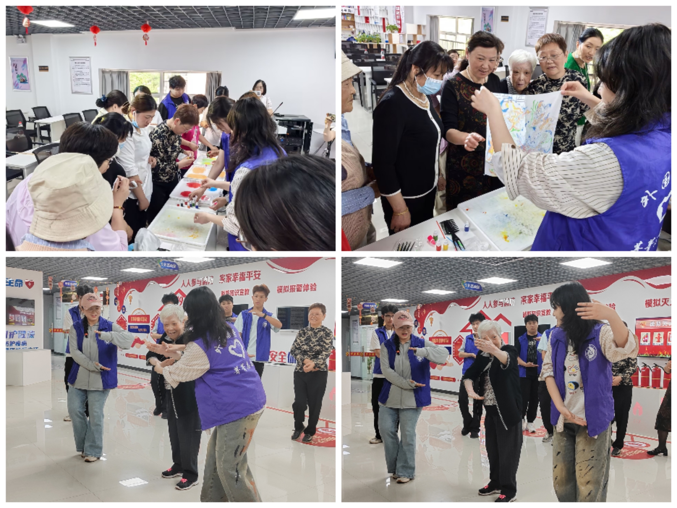 水拓丝巾凝巧思,匠心共绘慈母情。最具创意的“水拓丝巾”制作环节成为全场焦点。志愿者与长者两两结对,将五彩颜料滴入水面,勾勒出流动的斑斓纹路,再小心翼翼拓印至丝巾之上。每件独一无二的手工作品,都凝结着长者的人生智慧与青年的创新灵感,成为献给母亲的特别礼物。老人们兴致盎然地分享创作心得,志愿者专注倾听、贴心协助,现场洋溢着其乐融融的协作氛围。
