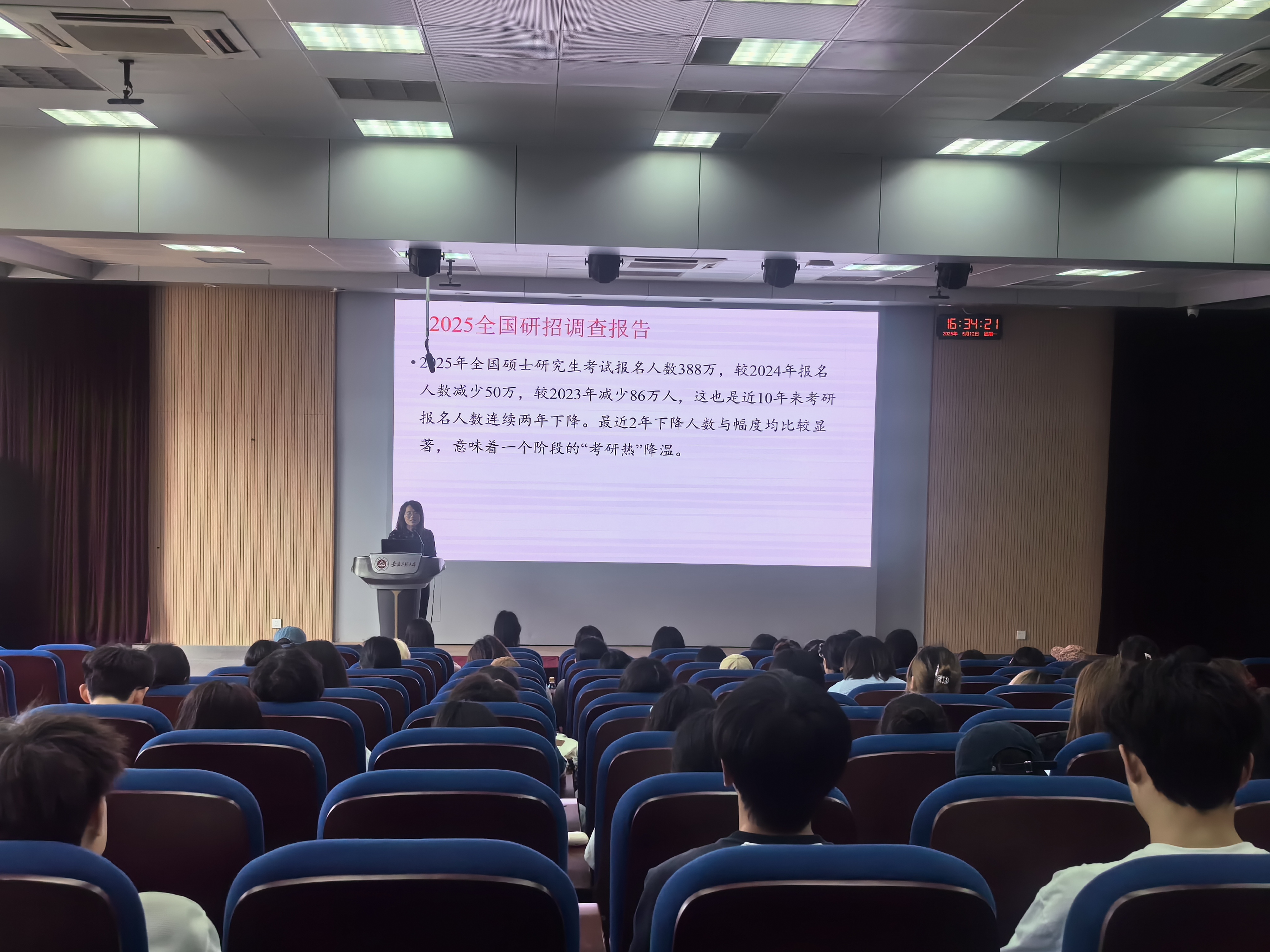 韩利敏结合报考趋势、考研形势展开深度解析。她指出,考研是一场信息战、攻坚战,同学们应理性评估自身实力,避免盲目跟风择校。要尽早确定目标,制定科学学习计划,早日投入备考。