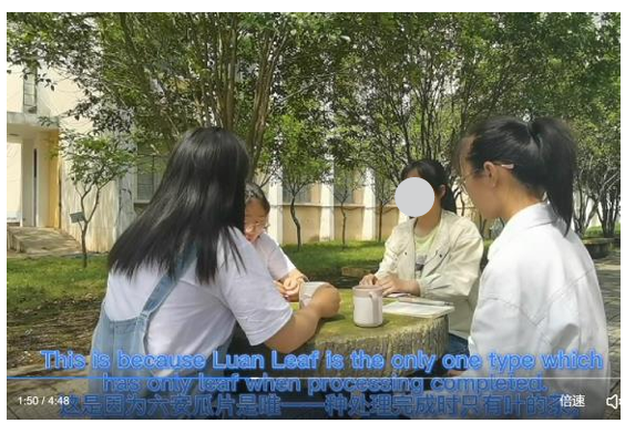 课程授课以学生为中心、以成果为导向,通过任务设计、教师搭建“脚手架”,学生自主和合作学习,形成了视频、英文表演、中国文化相关演讲等形式多样的作品,选题涉及“杂交水稻之父”袁隆平、抗疫英雄钟南山、中国北斗导航系统、中国高铁、中国古代珠算、中国古代水利工程、中国特色服饰、地方特色饮食等。