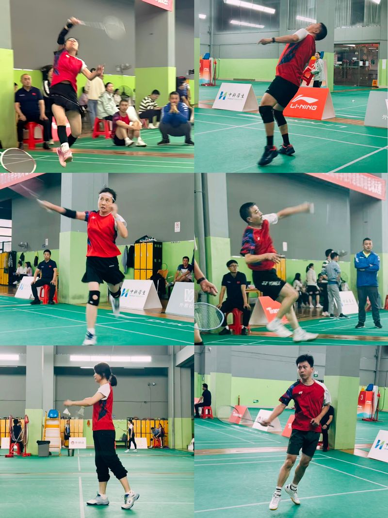 本次大赛吸引了来自长三角地区十六所高校的外语教师代表队参与角逐,竞争异常激烈。比赛采用混合团体赛制,设有混双、女双和男双等项目。从小组赛阶段的稳扎稳打,到淘汰赛阶段的过关斩将,每一场比赛都凝聚着队员们的汗水与智慧。面对经验丰富的对手,队员们在赛场上精准判断、灵活攻防,时而以稳健的防守化解危机,时而以凌厉的杀球掌握主动,多次在焦灼局势中凭借顽强意志扭转战局。尤其在季军争夺战中,队员们顶住压力、默契配合,最终以出色表现锁定胜局,现场观众的掌声与喝彩声此起彼伏。