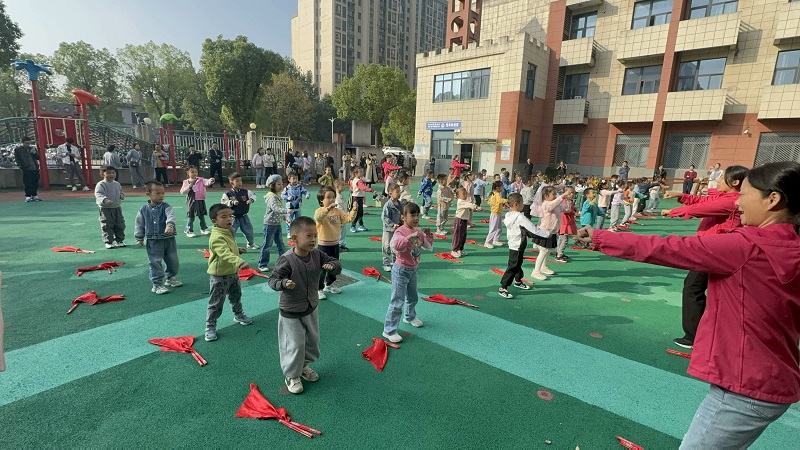 清晨,孩子和家长手拉手走进幼儿园。早操时间,伴随着欢快的音乐声,孩子们个个精神饱满,和着动感的音乐,他们跳出了欢乐,也跳出了可爱,家长们纷纷举起手机记录美好时刻。