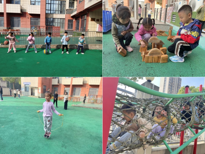 晨间活动开始啦!班级老师结合大班孩子的年龄特点和发展水平,为孩子们提供了丰富多彩、形式多样的户外活动器械,让孩子们自主选择感兴趣的器械投入其中,在游戏中收获快乐,收获成长。