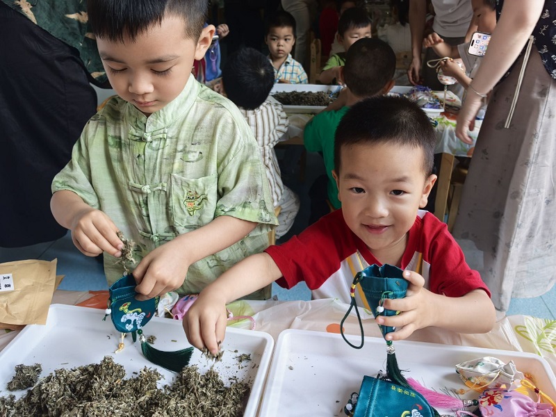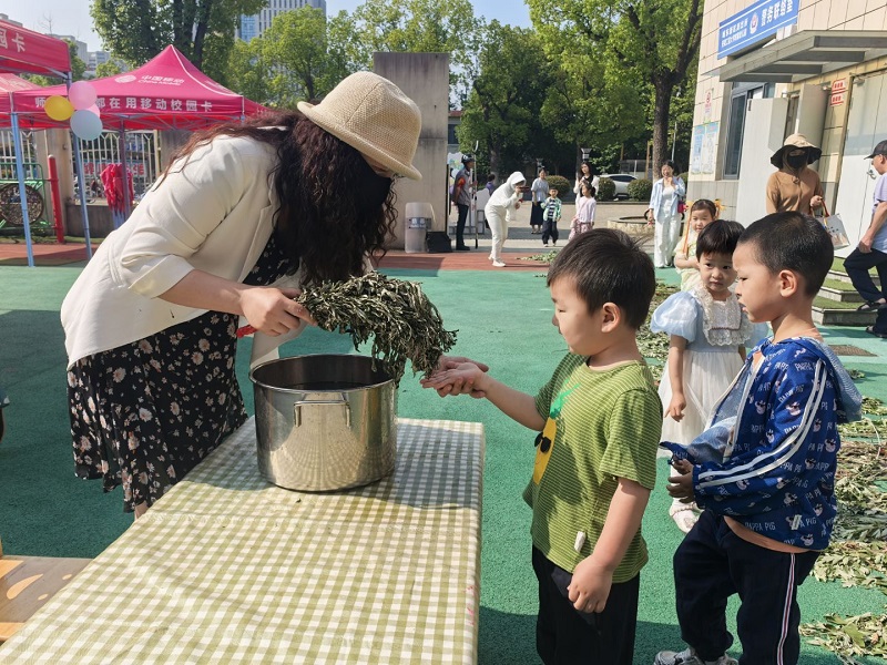 上午9点,孩子们陆续入园。幼儿园精心安排了“踩艾草”“手沐兰汤”等节日仪式,引导孩子们在仪式感中走近端午、感知传统,浓浓的节日氛围扑面而来。