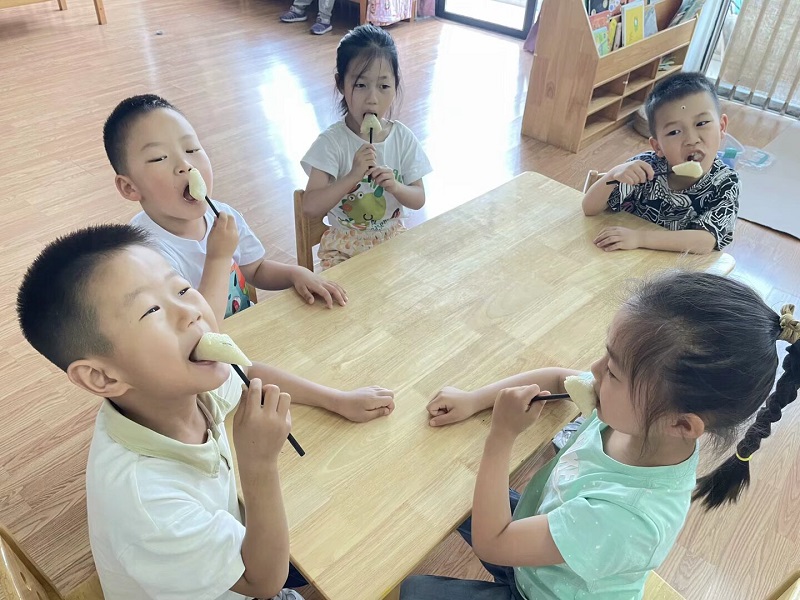 活动尾声,孩子们品尝着自己包的粽子,将自制的香囊、绿豆糕带回家,与家人分享节日的喜悦,让中华优秀传统文化在欢笑与陪伴中延续、传承。