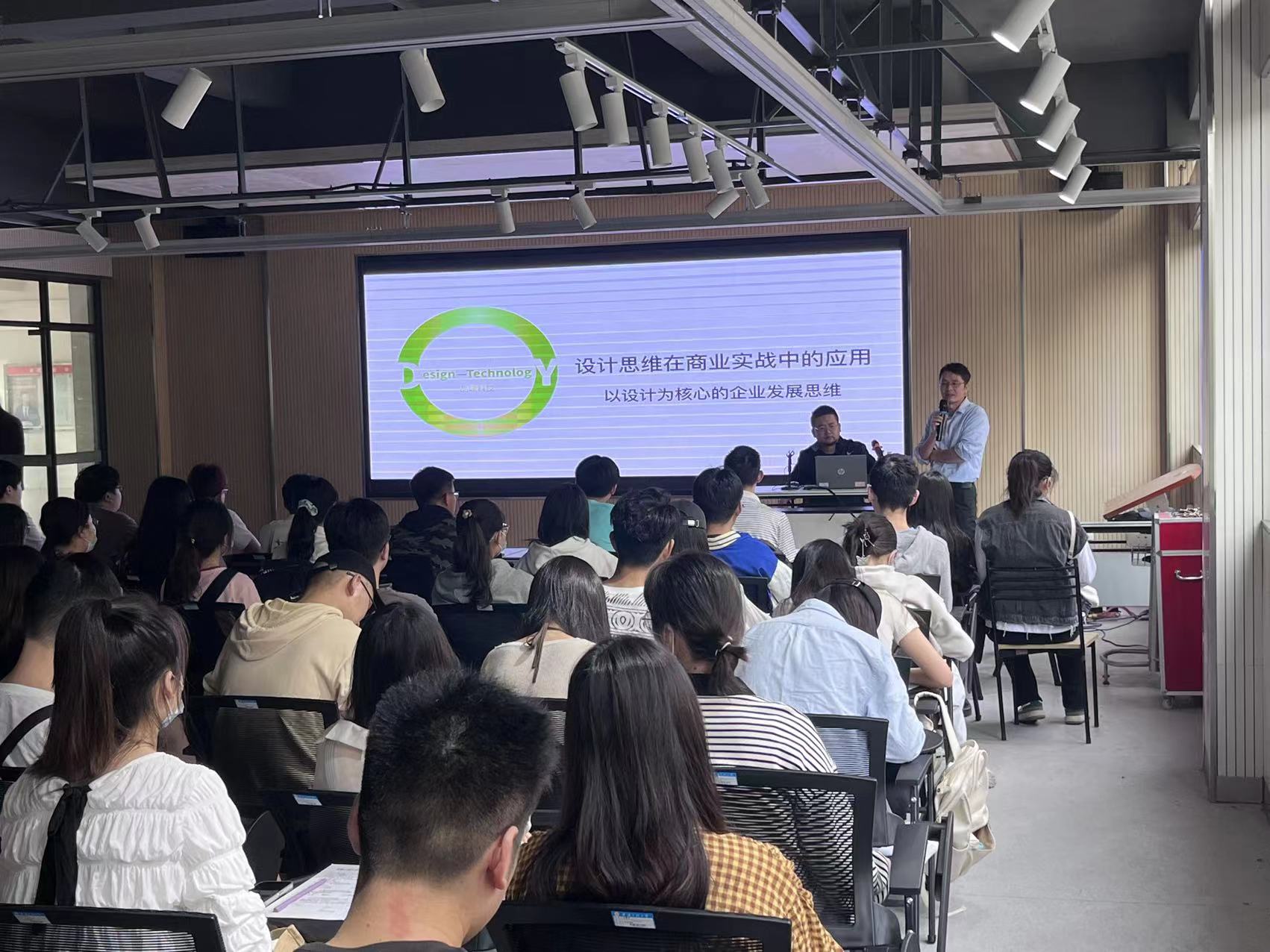 赵爽董首先对设计在商业中的作用作了较全面的解读,对“设计思维”、“设计流程”、“设计创新方法”、“商业运作”、“产品设计价值与商业价值”等产品设计中重要问题做了较深入分析。随后结合品肆智能科技有限公司最近开发设计的产品和自身实践经验,与师生分析了设计思维的价值。主讲者丰富的经历、渊博的知识、风趣的语言给艺术学院师生留下了深刻的印象。讲座进一步探索了产教融合在教学中应用。