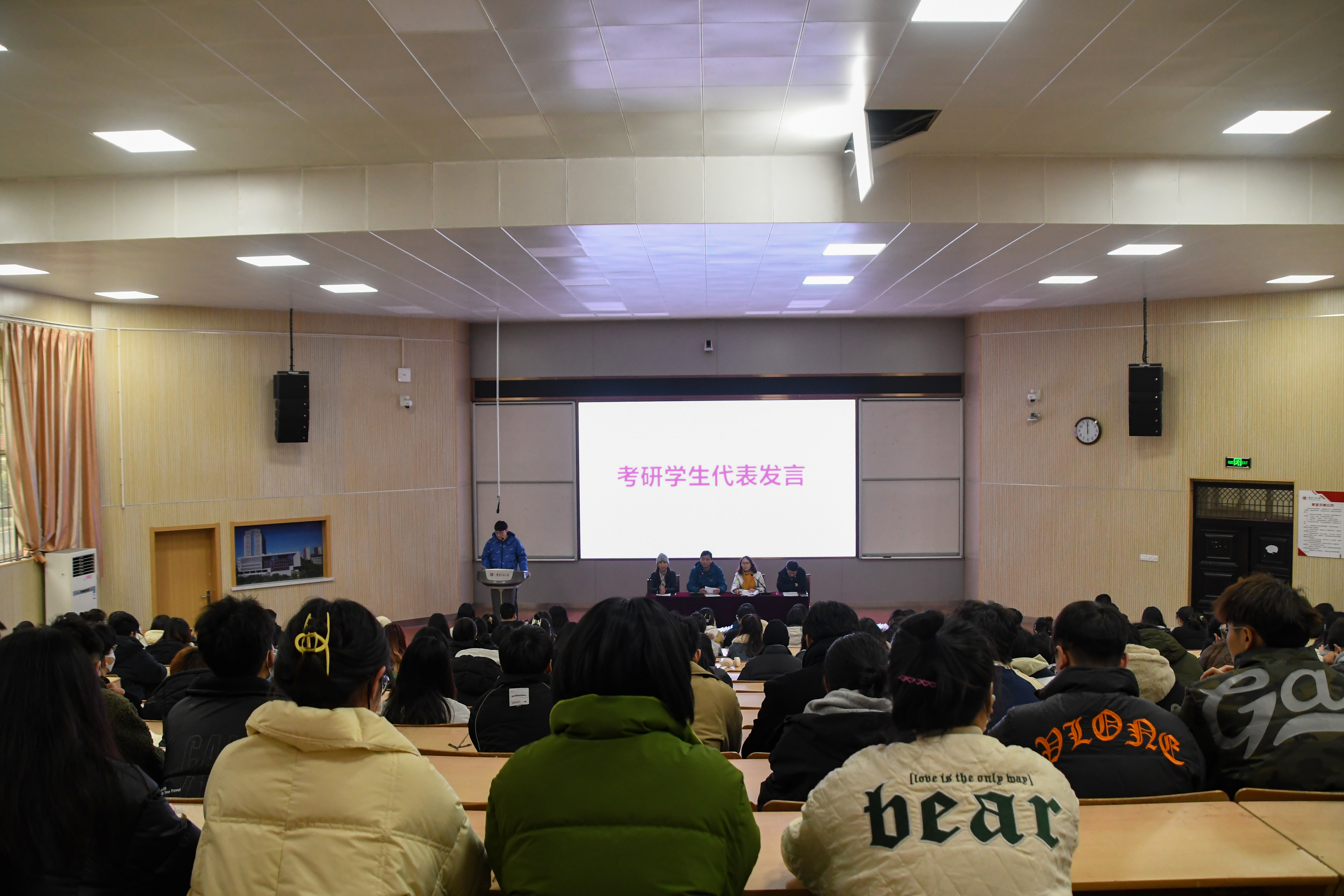 广告191班李元昊代表考研学子感谢学院领导的关爱、专业老师的指导、辅导员的关心照顾,表示将坚持到最后一刻,全力以赴迎接考研初试,为实现梦想不懈努力。