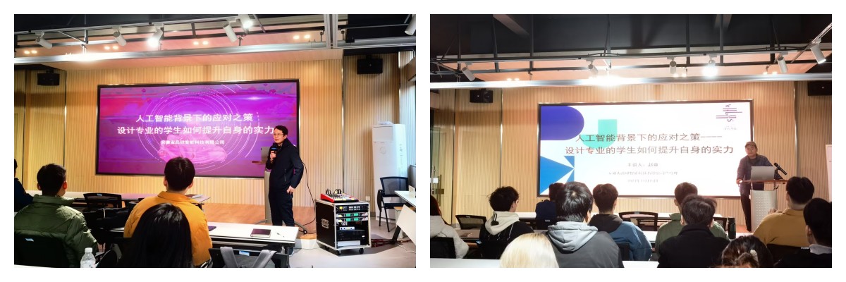 11月15日下午,2012届工业设计专业校友,安徽品肆智能科技有限公司总经理赵爽为2021级工业设计、产品设计专业学生作《人工智能背景下的应对之策——设计专业的学生如何提升自己的实力》报告,副院长张学东主持。赵爽是清华大学美术学院研究生,曾在华为任职手机产品线多媒体领域设计师,他从设计专业在整个产业环境下的定位、人工智能带来的挑战、设计专业的学生如何应对等方面入手,结合自身考研和创业历程,引导学生立足中国国情,做怀有初心和使命的设计者,积极拓宽知识领域、协同发展、学无止境,不仅要做好设计工作,更要成为具备综合素养的设计人才。他希望大三的同学们珍惜在校学习时间,制定好自己的职业规划,明确自己的发展方向,提升专业能力和实践能力,朝着目标努力奋斗。