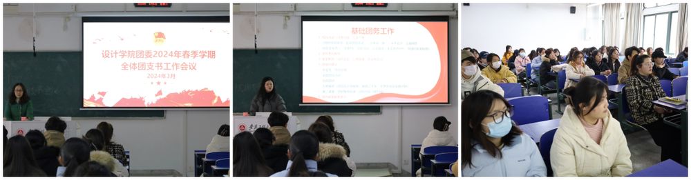 为全面落实从严治团工作要求加强团员思想政治教育,切实推进团的自身建设,推动学院团学工作高质高效开展3月6日中午13:00,设计学院团委在6教208教室召开春季学期全体团支书工作会议。学院党委副书记彭海燕,团委副书记田潇濛,研究生辅导员黄淑怡和全体团支书参加会议。
