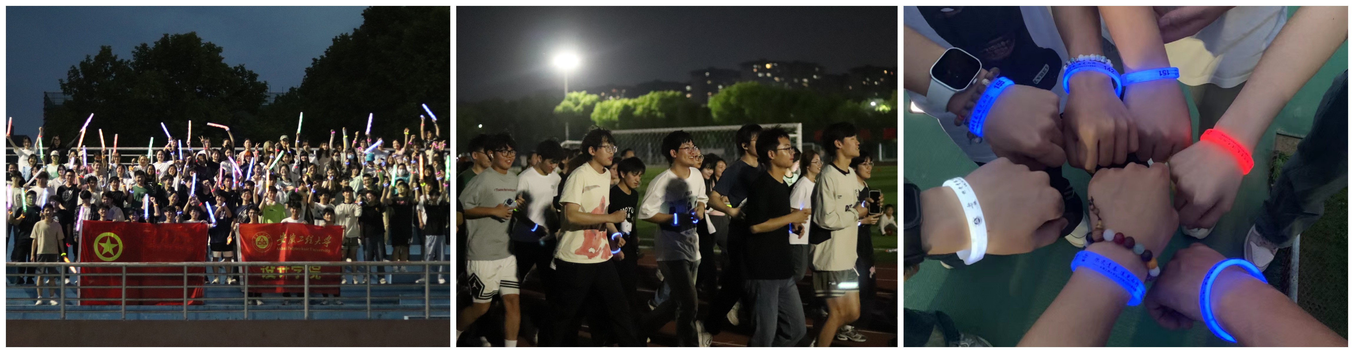 本次活动共吸引了200余名师生参与跑步打卡,为夜色中的校园增添了一道亮丽的风景线。新颖的形式让参与者在锻炼了身体的同时,也释放生活压力,尽情奔跑,享受运动带来的快乐。伴随着开跑口令,青年学子们挥动荧光棒一起迈开步伐、奔跑向前,开启了酣畅淋漓的夜跑之旅。操场上一圈一圈“荧光夜跑”,好像星星洒满了操场。浩大壮观的跑步队伍展现出徽程师生的活力和风采,营造出强身健体的校园氛围与环境。数媒231班的王健杰同学表示:“与同学们共同打卡荧光夜跑是一次很有意义的活动,田径场上的青春与朝气彰显了徽程人昂扬向上的精神和拼搏奋斗的志气。我也更加坚信,青春就是要有这样的激情和活力,去追逐自己的梦想,去创造属于自己的辉煌。”