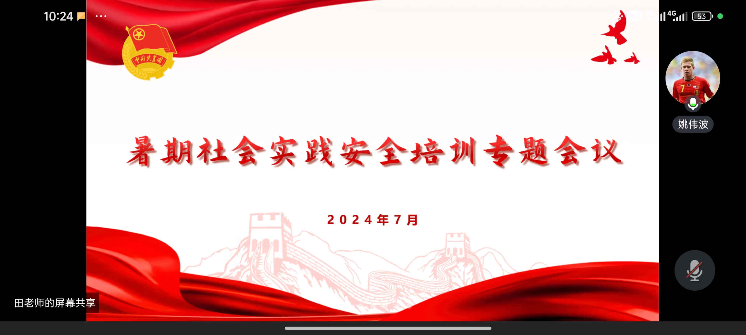 姚伟波动员讲话指出,暑期三下乡社会实践活动是青年学生了解国情、感知社会、服务群众的重要途径,希望同学们能够珍惜这次机会,深入基层、脚踏实地,将所学专业知识与实践相结合,为乡村振兴贡献青春力量田潇濛介绍了学院暑期社会实践的整体筹备情况,详细阐述了社会实践活动的具体内容及工作要求,围绕防中暑、防溺水、食品安全等方面进行安全培训,提醒同学们周密部署、充分准备,做好安全预案。