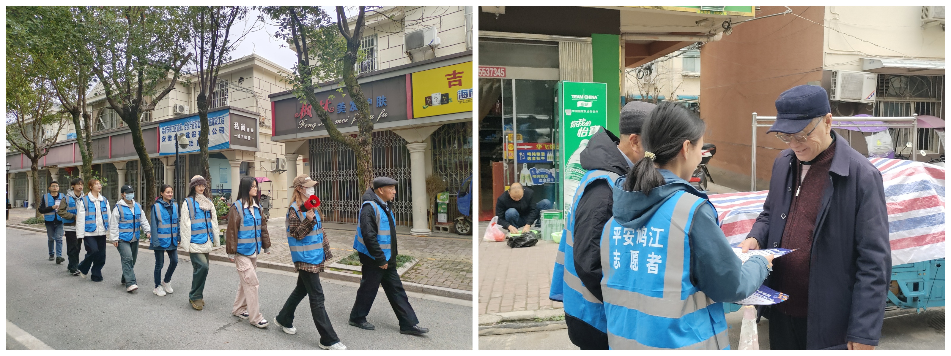 随后,志愿者们身穿蓝色马甲,针对社区公共区域的治安环境开展巡查工作。巡逻中志愿者们对社区的交通要道、居民住宅区及沿街商铺等关键区域进行了全面而细致的治安检查不仅强化了流动人口与出租房屋的管理,还耐心提醒居民加强防火、防盗、防诈骗意识,为社区的和谐稳定筑起了一道坚实的防线,赢得了社区居民的广泛赞誉。