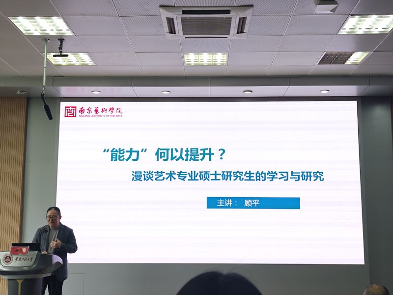 南京艺术学院顾平教授以“能力何以提升?漫谈艺术专业研究生的学习与研究”为题,剖析了艺术教育中学术研究与创新能力的协同发展路径;系统构建艺术类研究生“双轨能力模型”,提出“专业实践能力+学术研究能力”的螺旋提升路径,强调“专业型硕士当以独门技艺立身,用功用心成就核心竞争力”。